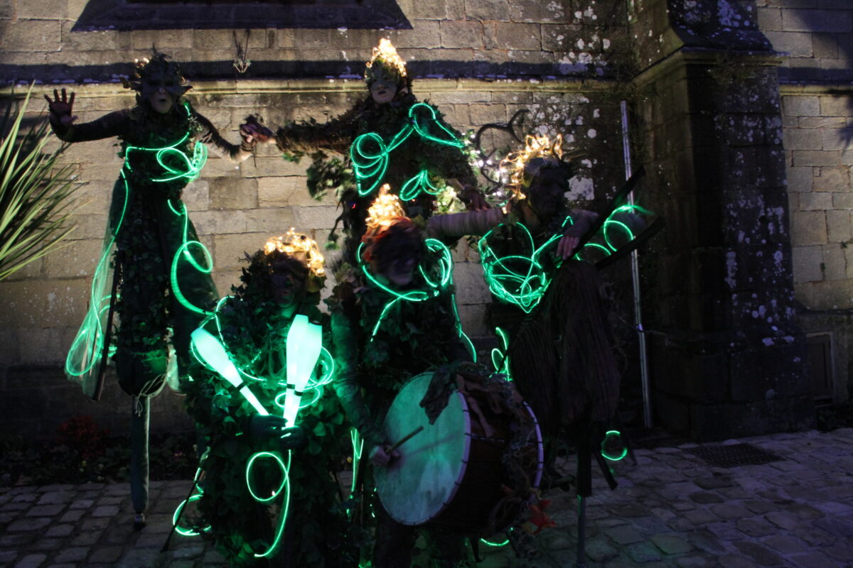 Les Esprits de la Forêt est un spectacle poétique sur échasses, inspiré des mythes et légendes liés à la nature. Les personnages élancés évoluent avec grâce au milieu du public, transformant l’espace en un paysage onirique et sensible.